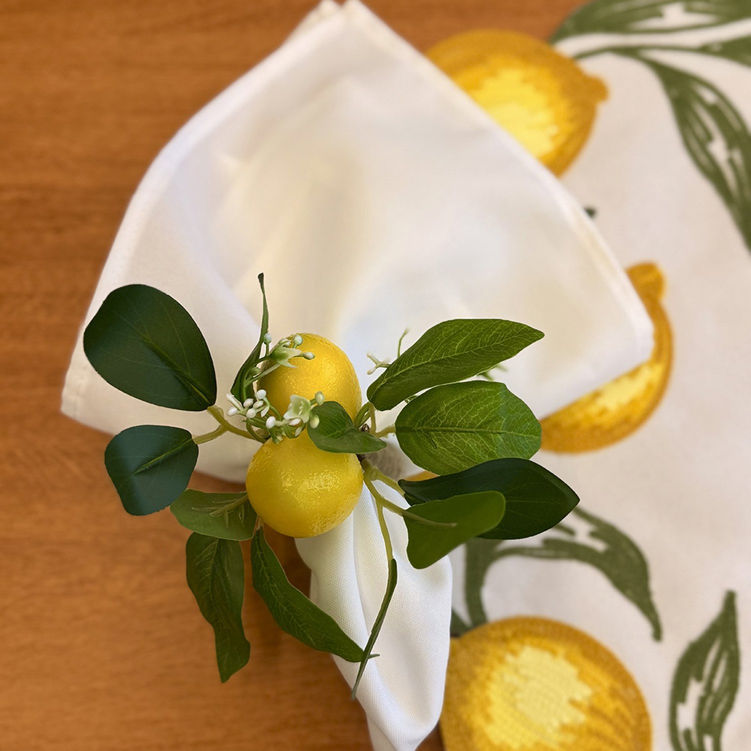 O Anel Porta-Guardanapo Limões traz frescor e elegância para a mesa posta, inspirado na leveza e na vivacidade dos cítricos. Com um design delicado que remete a pequenos limões acompanhados de folhas verdes, a peça adiciona um toque natural, sofisticado e acolhedor à composição.